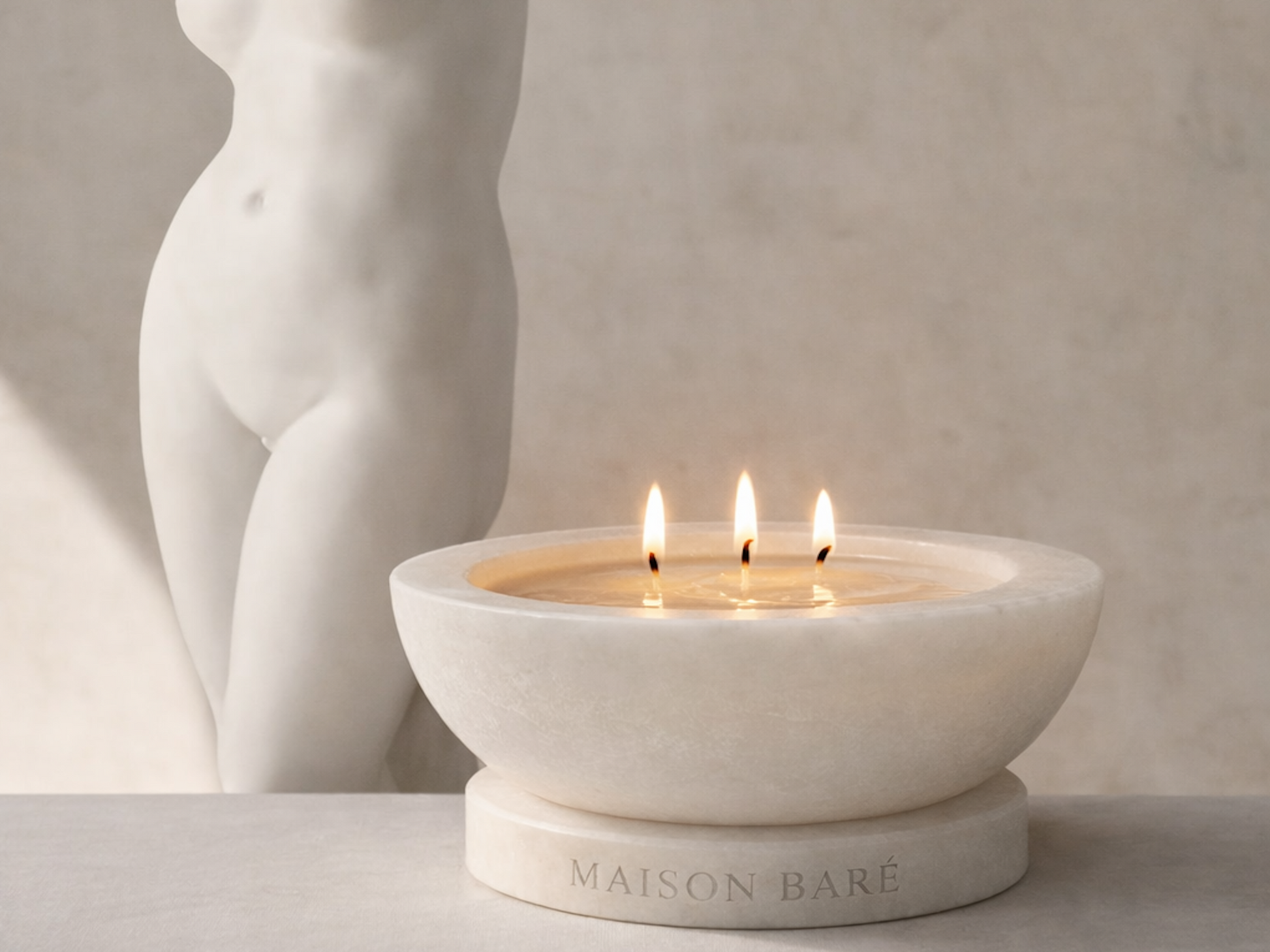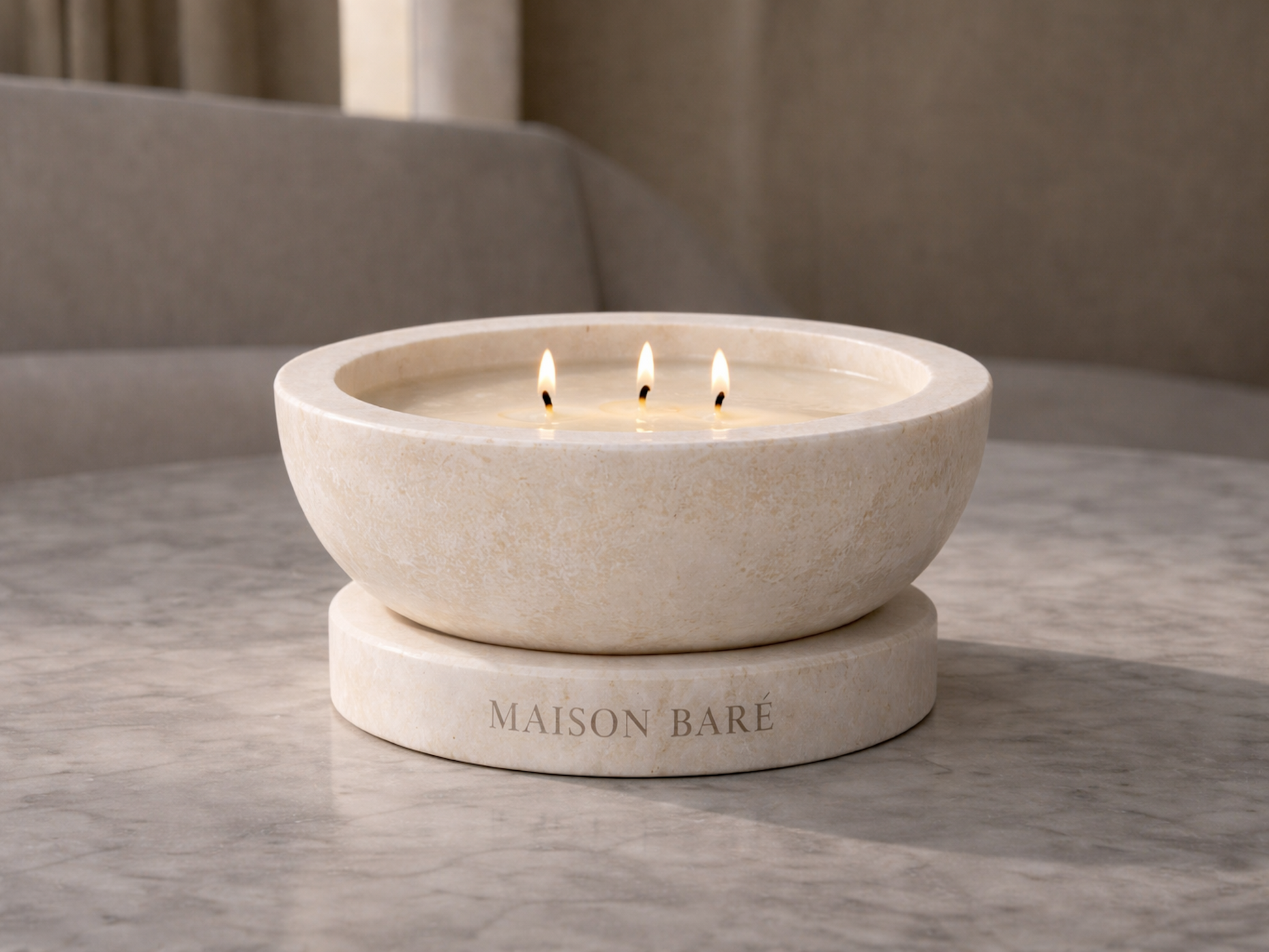 A tazza form rendered in wax: architectural, quiet, and permanent in presence. Inside, a refillable coconut-wax candle burns cleanly—returning the object to stillness.